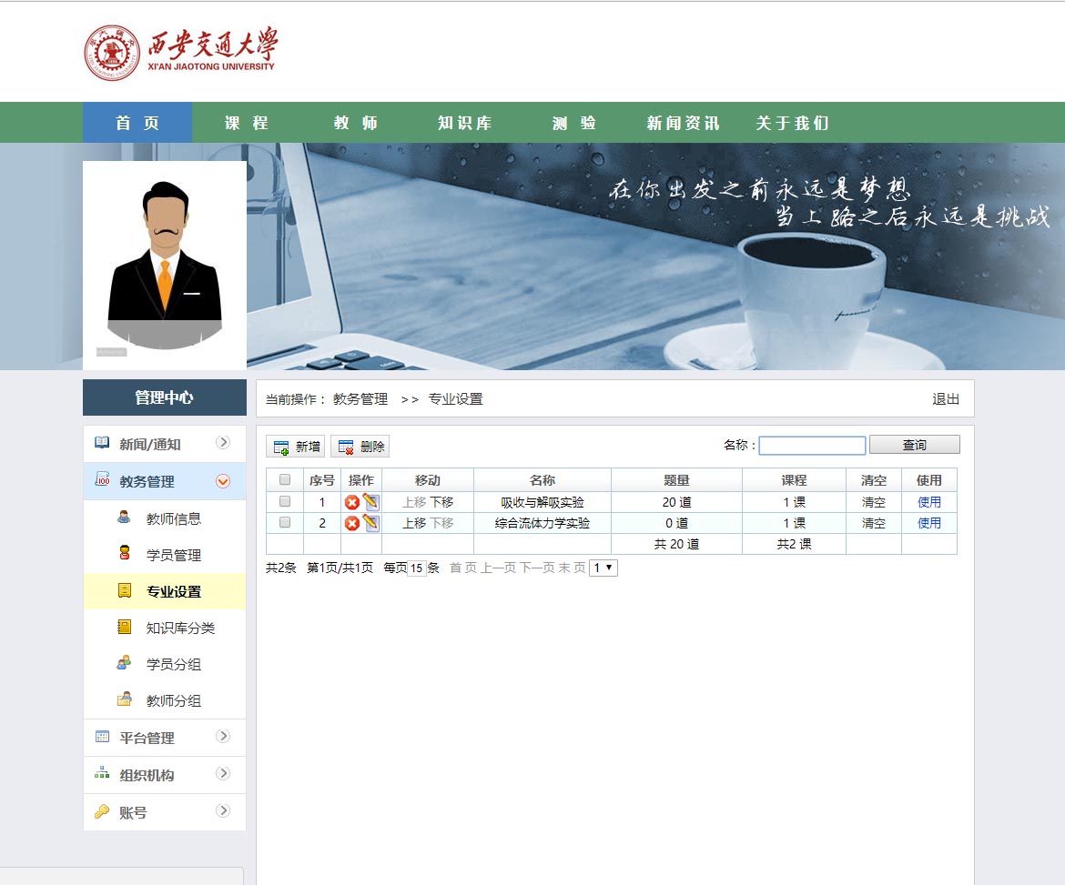 系統(tǒng)的主要功能可以理解為在線“學(xué)習(xí)與測評”。它的主要功能也集中在兩點(diǎn),一是學(xué)習(xí)培訓(xùn);二是考試。在學(xué)習(xí)培訓(xùn)部分,首先是老師編排課程,然后學(xué)生選擇相應(yīng)課程學(xué)習(xí)。考試部分,則由老師錄入試題,隨機(jī)生成試卷,學(xué)生參加考試。通過記錄學(xué)員在線上參加的理論學(xué)習(xí)、考試、錯題回顧等情況,實(shí)現(xiàn)對學(xué)員學(xué)習(xí)情況的全程跟蹤管理和對學(xué)生培訓(xùn)需求的全面掌握。